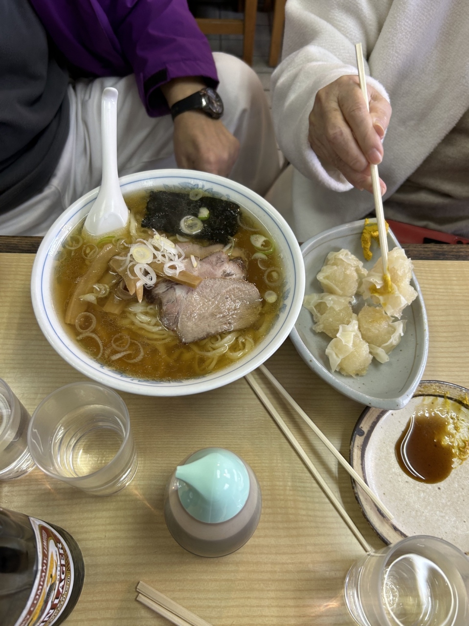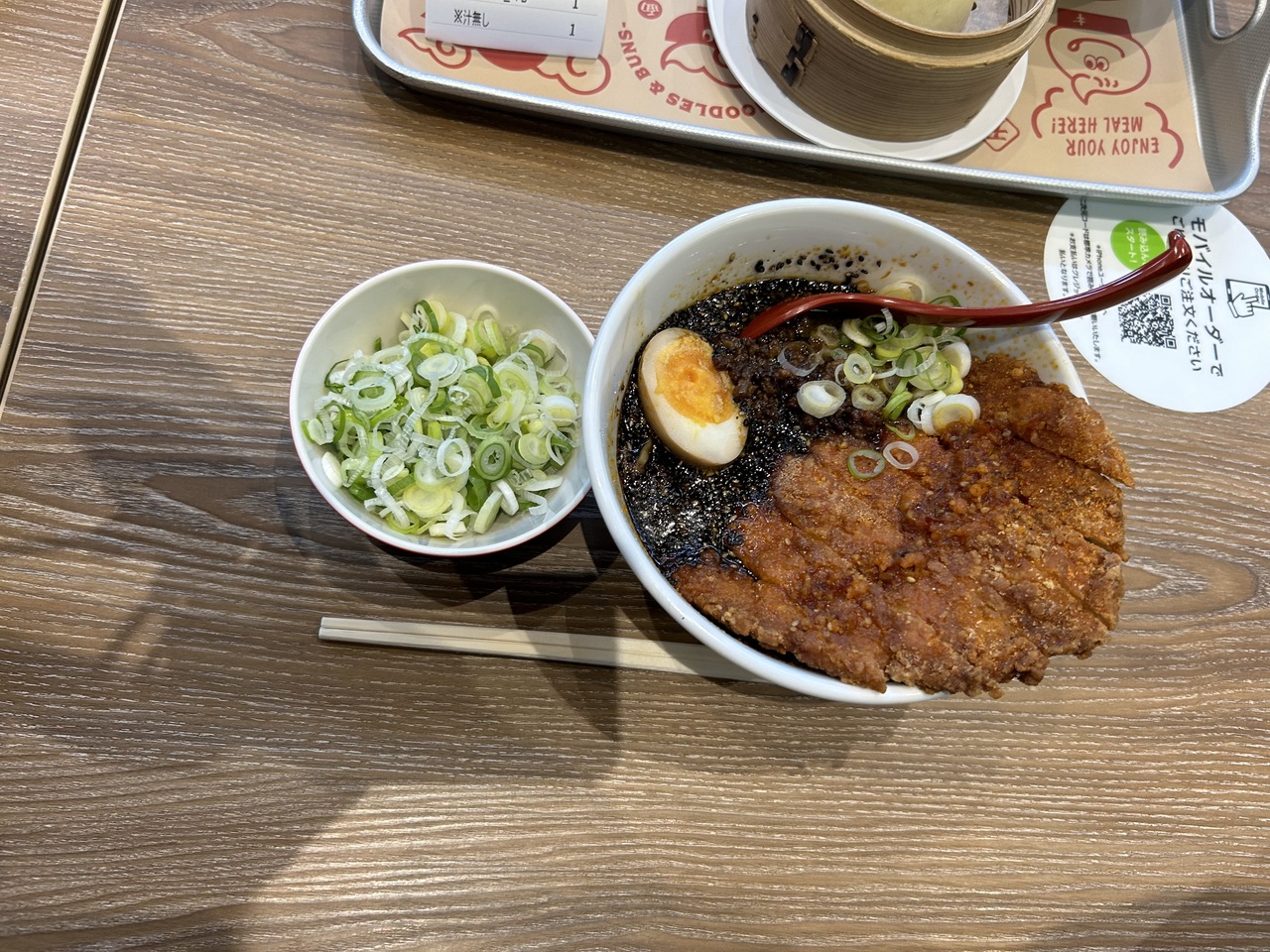 中華そば 黒胡麻担々麺 ジーパイ担々麺 深谷ねぎ追加 大人四人で セットなので肉まんも堪能した