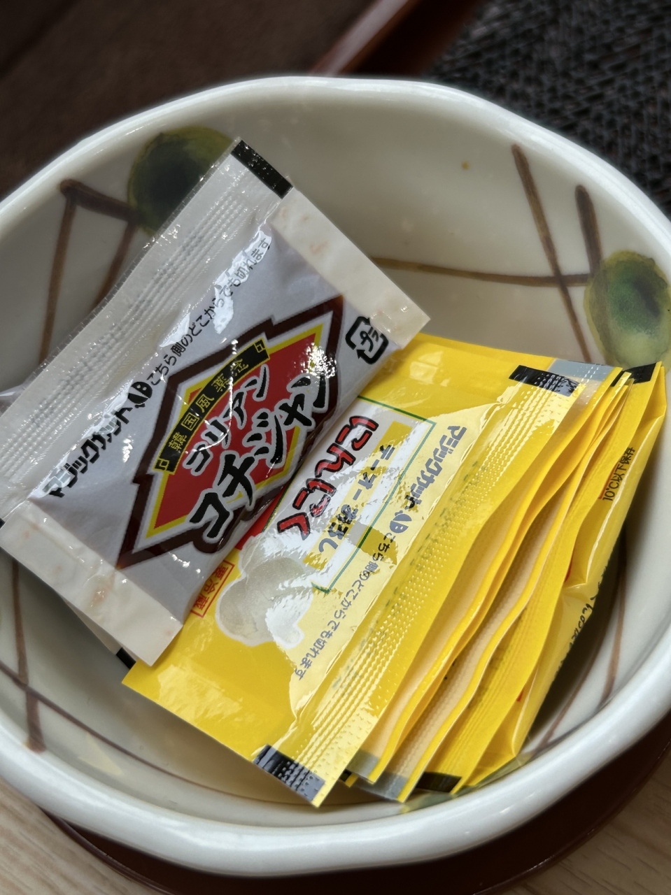 無料トッピングはごまや七味唐辛子、生姜のすりおろしがあります。