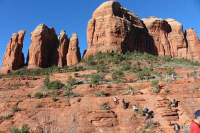 セドナのアップタウンからVerde Shuttle、Sedona Shuttle を乗り継いで登山口の駐車場まで行きました。カセドラルロックの往復だけなら1~2時間で十分でしょう。私たちは、ベルロックまでハイキングコースを歩く周回ルート(5時間半)を歩きました。