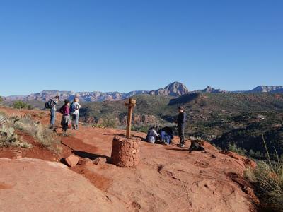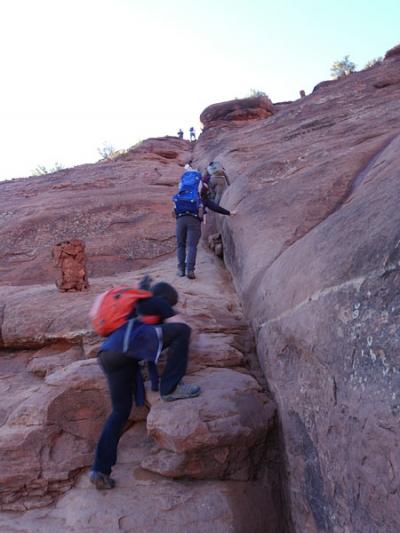 カセドラルロックの一番上(END OF TRAIL)まで行くのは大変そうです。何しろ、大きな岩山でハシゴや階段がなく、自然のままの状態です。滑らないように気をつけて岩をよじ登るので、登れたとしても、下りるときは、登るとき以上に危険です。途中までで引き返す人がほとんどです。途中まで登っただけでも、十分、素晴らしい景色でした。