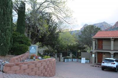 セドナのアップタウン、The Y の真ん前にあるので、シャトルバスのバス停、レストランなどが徒歩圏で大変便利なロケーションです。シティービューの部屋に泊まりました。シティビューの部屋は幹線道路に面していますが、車の音は気にならなかったです。部屋から景色が見えませんが、敷地の庭からセドナの景色が見られます。セドナでハイキングを楽しむなら、お薦めのホテルです。なお、コンビニは徒歩15分(約1.1km)でサークル K、徒歩35分(2.3km)で Whole Foods Market があります。