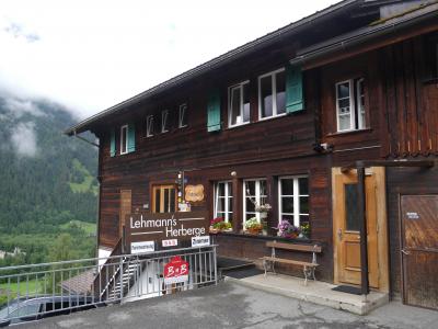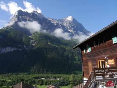 グリンデルヴァルト駅、フィルスト行きゴンドラ乗り場の中間くらい。どちらも徒歩圏。COOP、MIGROSも近いので便利です。メインストリートのドルフ通りから少し下がったところにあり、ベッターホルンやメッテンベルクの眺めが良いです。私たちの泊まった部屋はツインベッドルームのバスルーム付(シャワーのみ)でしたが、1人旅用のシングルベッドの部屋や供用バスルームの部屋、二段ベッドの部屋など、どちらかといえば、若い人向けだと思います。