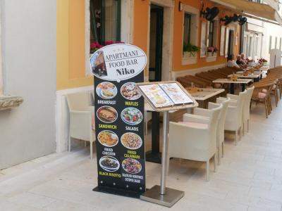 Google Maps では 宿泊施設の名前は表示されず、Caffe Bar Niko しか表示されません。私が予約したのは、Apartments Niko とうい名前でしたが、今は Private room Niko という名前になっています。現地での表記は APARTMANI FOOD BAR Niko でした。カフェバーですが、朝食、昼食、夕食も Caffe Bar Niko で食べられます。- 旅行時期