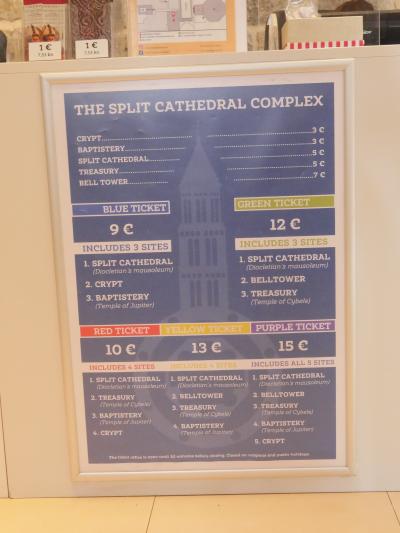 狭い空間に見どころ、スポットが密集しています。ガイドブックや平面的な地図だけでは分かりにくいです。見どころのスポットが、ここが「前庭」ここが「洗礼室」などと明記されていませんし、チケットを買うにしても英語とクロアチア語の表記で日本語表記はありませんので、注意が必要です。うっかりすると、あとになって見残す場所があるかもしれません。
