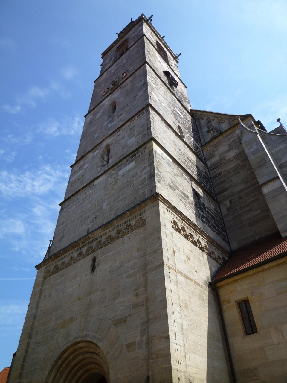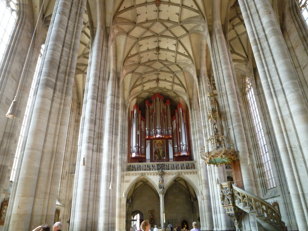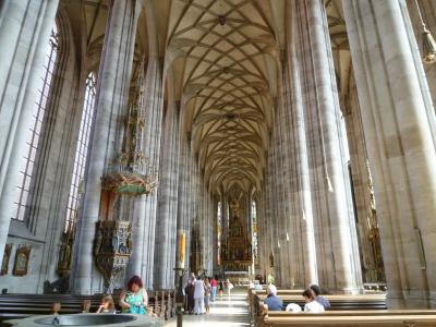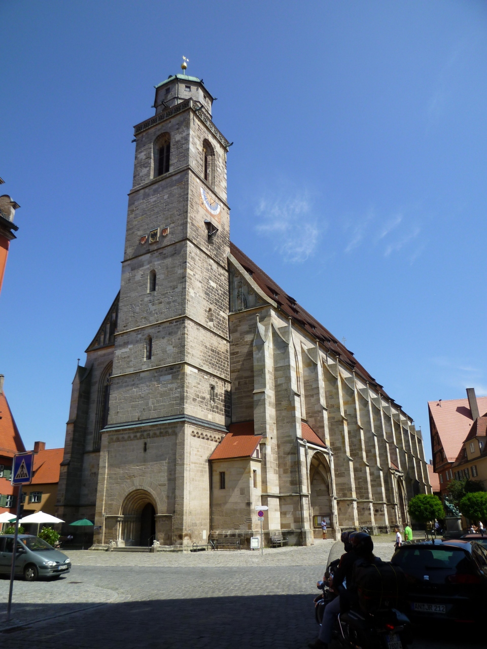 ディンケルスビュールの街の中心地にあり教会は手軽に見学できます。大きくて高い塔のあるゴシック調の教会です。教会の中も広く天井も高く厳かな雰囲気です。入り口にキリスト像があります。中に入るとマリア像も有ります。時間があれば中に入っての見学もお勧めです。
