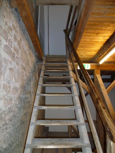 市庁舎の塔は有料です。朝9時30分から上れるので早めに待っていて朝一番に上りました。一度に20人しか上れないので、人数がオーバーした時は屋根裏部屋で降りてくる人を待って上ります。階段は狭く滑りやすいので歩きやすい靴がお勧めです。女性はミニスカートだと下から見えてしまうので気を付けましょう。
