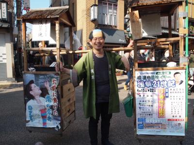 浅草寺に行く途中に会った浅草焼き屋さん。昔の屋台は、天秤棒を担いで移動...