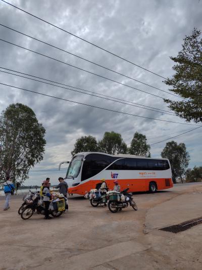帰りはバスが違って寒くはないけど充電口がないバスでした。ホテルからGrabツクツクでキャノン公園のバスターミナルへ。9時出発ってことことだったけど20分遅れの出発。危なく9時のホーチミン行きのバスに乗り間違えるところでした。