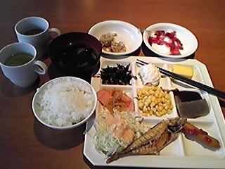 朝食は和洋バイキングで品数は少ないですが十分です。