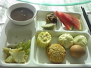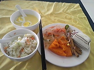 朝食は中国の一般的な内容で日本人には