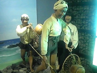 1階は水族館で熱帯魚、貝、海老等がいました。