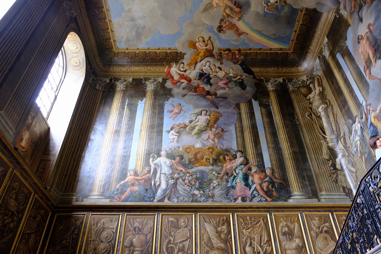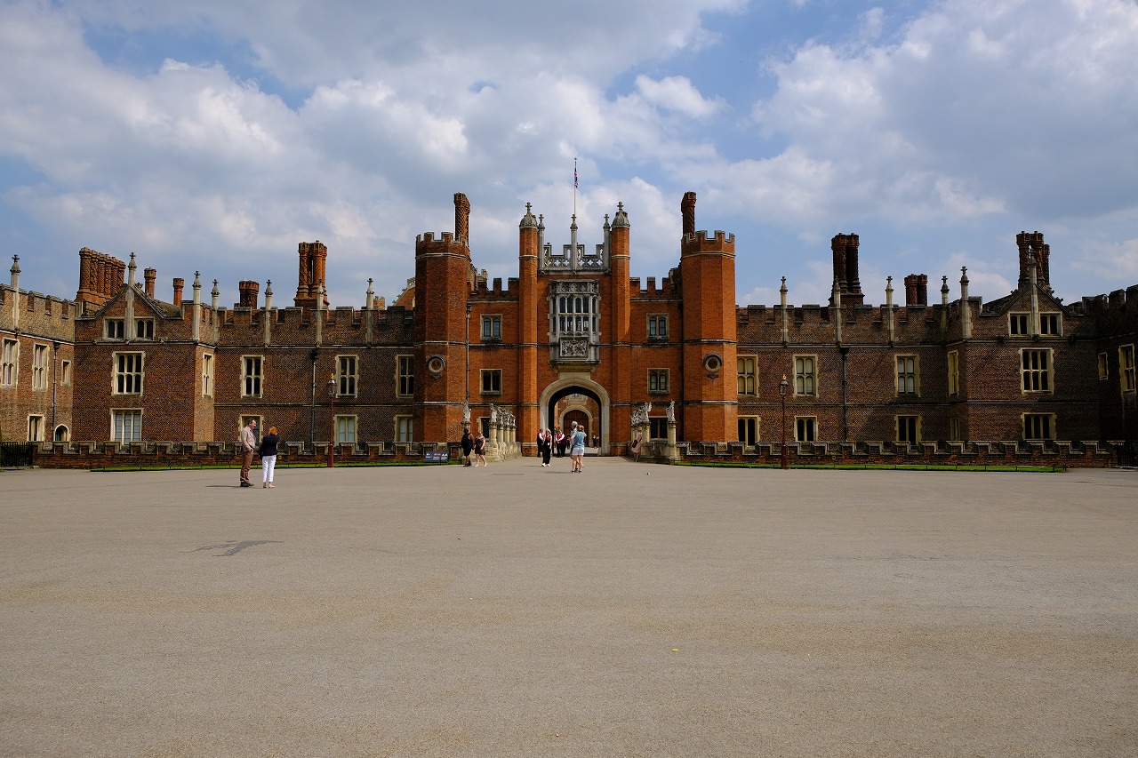 ハンプトン・コート・パレスはロンドンから20キロ程度の距離にあります。ロンドン ウオータールー駅からローカル線で30分ぐらいでハンプトン・コート駅に行き、5分歩けばハンプトン・コート・パレスに到着します。入って左にチケット売り場があります。25ポンド。ちなみに迷路庭園は無料です。メインエントランスを入ってベースコートの左前の建物でオーディオガイドが借りれます。無料。各国語対応で日本語もよく出来ていました。見れるところは、