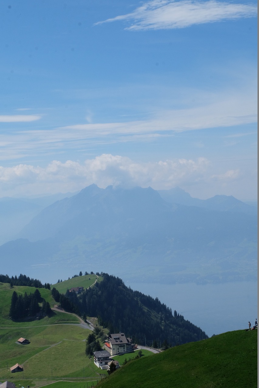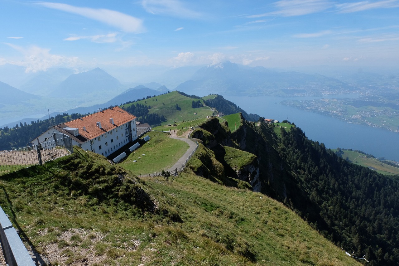 ルツェルンからスイス鉄道でアルト・ゴルダウ駅に向かい、坂を5分ほど上れば登山鉄道駅に出ます。この青い登山鉄道に乗って30分でリギクルム駅に到着します。青い登山鉄道は1時間に1本しかないので事前に時間を調べていく必要あり。私は帰りは山頂から徒歩でフィッツナウまで下って、そこから湖船でルツルンに戻りましたが、下りは途中から過酷だったのでハイキング予定の人は、しっかりした登山靴と両手にストックが必要。お手軽にハイキングしたい人は、フィッツナウから赤い登山鉄道で4駅ぐらい上ったところで下りて、山頂を目指したほうがいいかも。またはルツェルンから湖船でヴェッギスに行って、そこからロープウェイで登ったところから頂上を目指すほうがいい。山頂からロープウェイまでは下りも比較的緩やかなので往復できます。