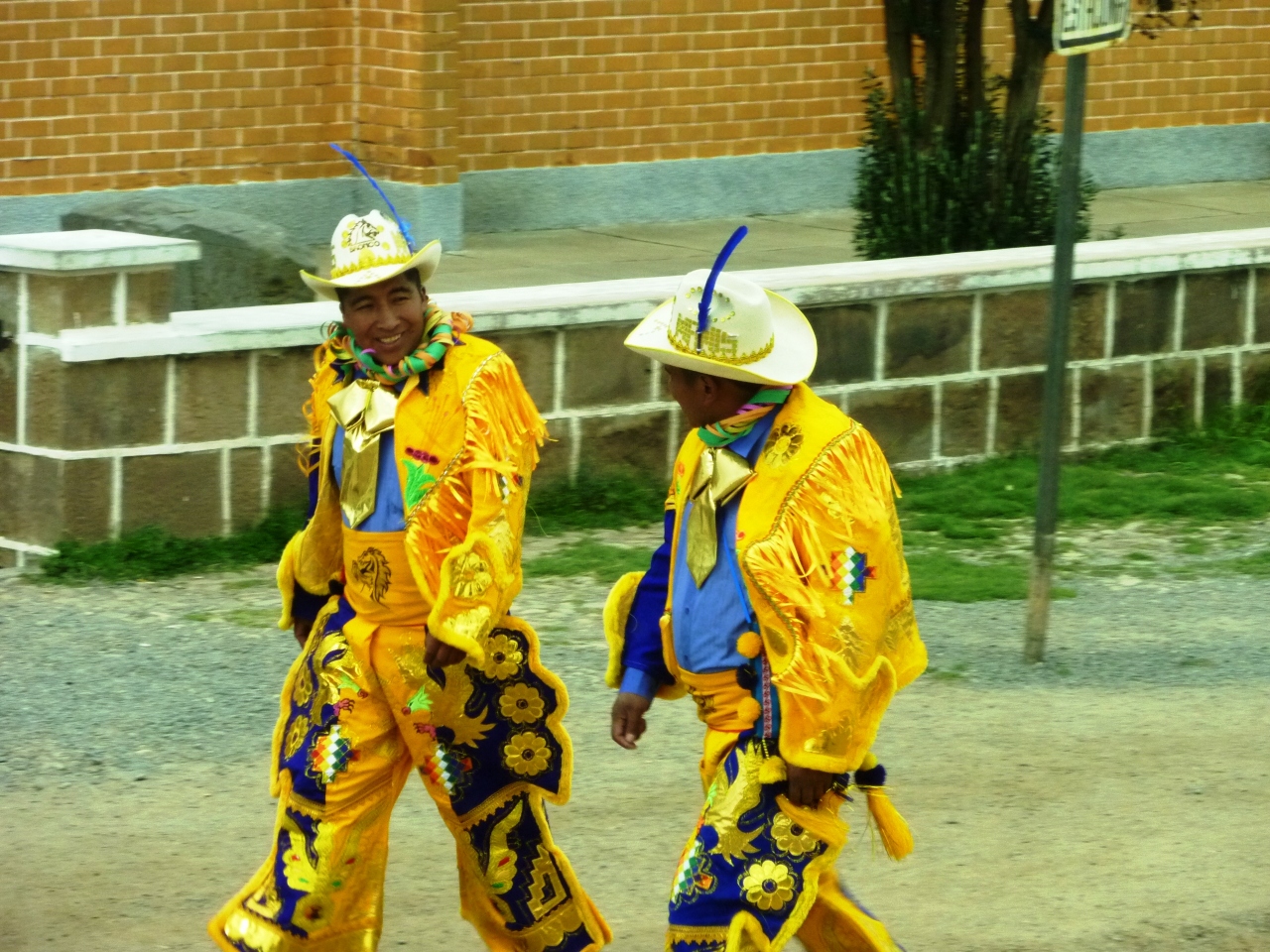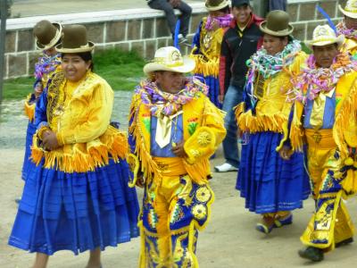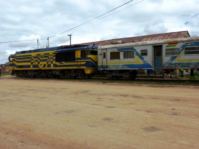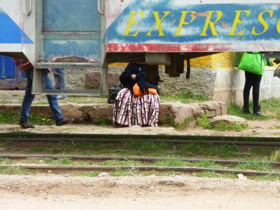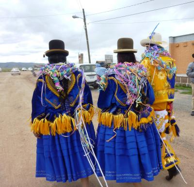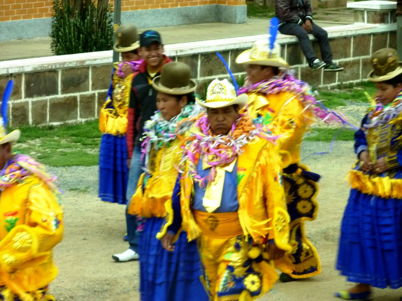 この時期はボリビアでもお祭りのシーズン。観光も混雑を避けて組まれるくらいです。各地で祭りの痕跡をみかけました。ですので列車の到着にあわせて賑やかな衣装の人が出てきたのか、元々の祭りのせいかよく分りませんでした。- 旅行時期