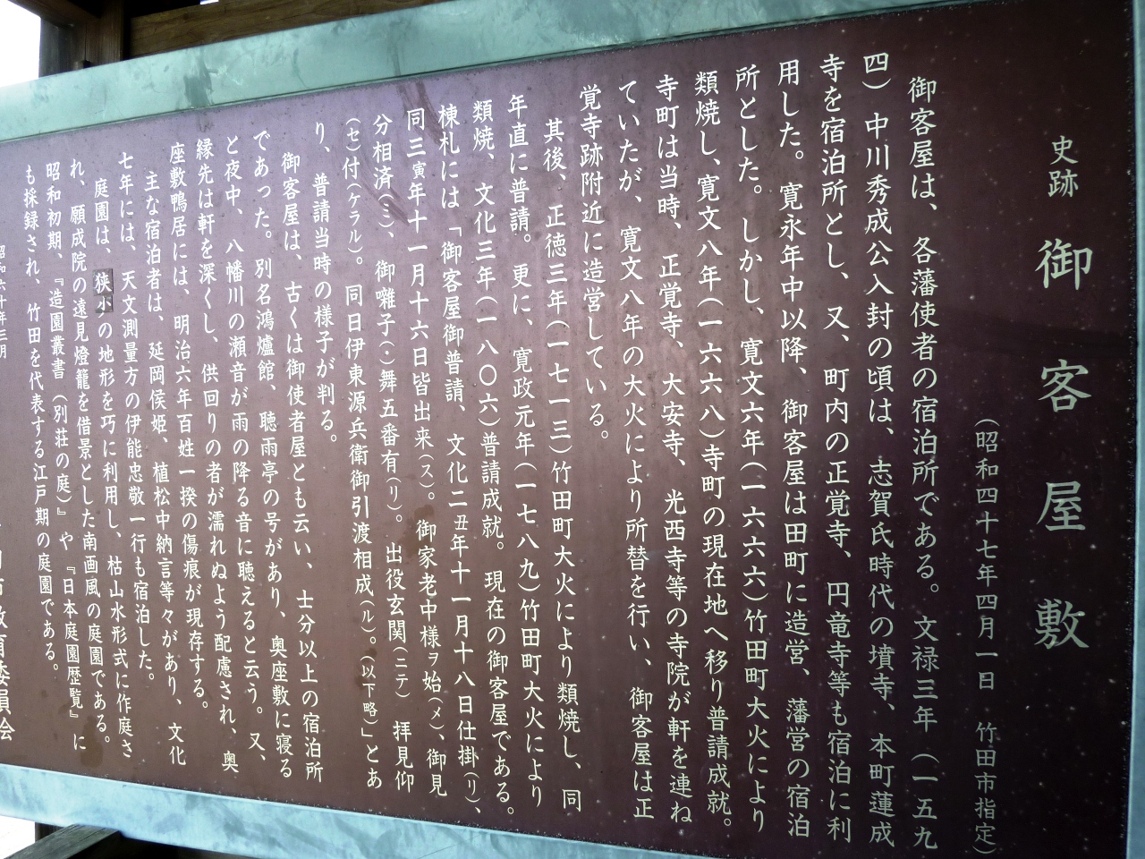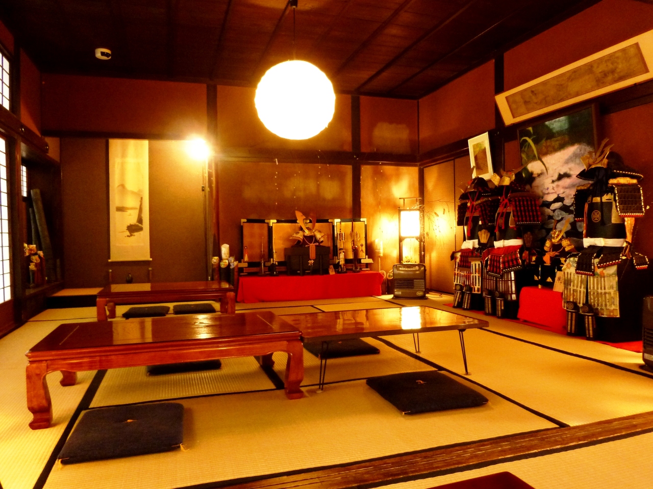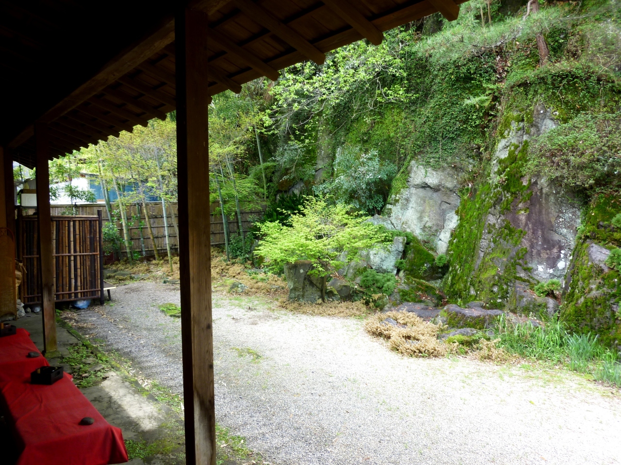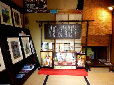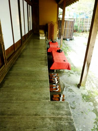 熊本滞在中に、日帰りで竹田の岡城など見物に行きました。ここはそのツアーに組み込まれていたお食事処ですが、古い家を利用してカフェ食事処にしてあり、大変良い雰囲気の場所でした。中には綺麗な飾りや手作り甲冑が四方に沢山ちりばめてあり(と言うしかないほど沢山の飾り)、長押の上には槍もあります。トイレは男女共古い和式というか時代風というか、男性は無地の陶器女性は木製漆縁で映画でしか見ないタイプです。庭は僅かな平地を阿蘇の溶岩から切り出してあります。説明を受けて知ったのですが、周り中が阿蘇山噴火の折の溶岩や土石流のせいで、竹田は僅かな盆地を除いて周りが岩に囲まれているとの事です。説明のせいか、成る程民家と言うべき家々さえ立派な石垣の上に建っているのを見て土地柄がよく分りました。ツアーの特典でドンブリ大の器に入っただご汁が付いておりました。熊本のより以前に食べた湯布院のよりおいしく感じました。場所により少しづつ味が違うそうです。アゴダシにしいたけに合わせ味噌を使っているそうです。この日のツアーは二人きり。折からの寒さの中大きな座敷が暖めてあり、貸切で使うのは申し訳ない位でした。竹田の観光は地元のお人の良さが特筆です。お目にかかったのは中高年の方々ですが皆さん親切で驚きました。