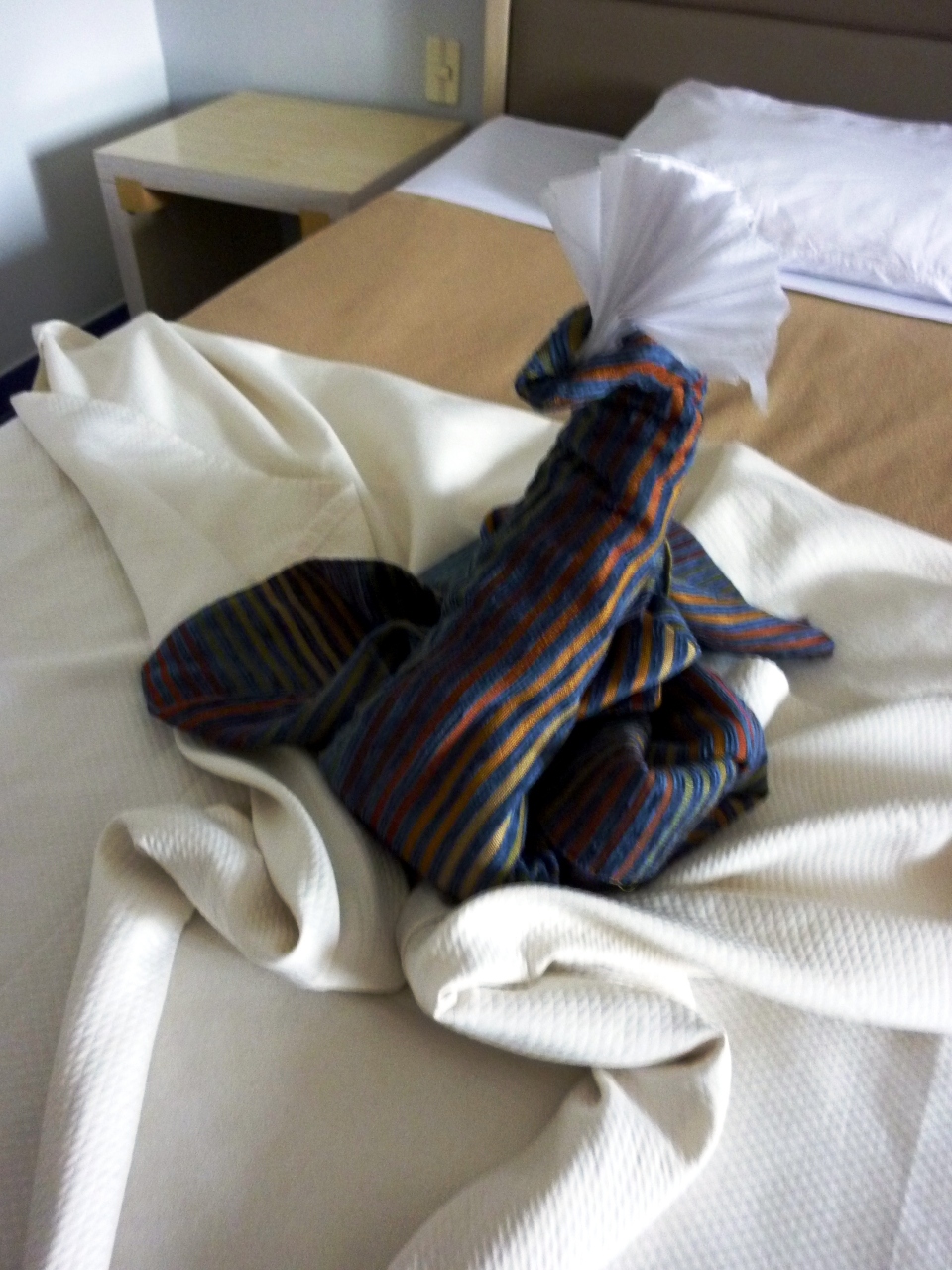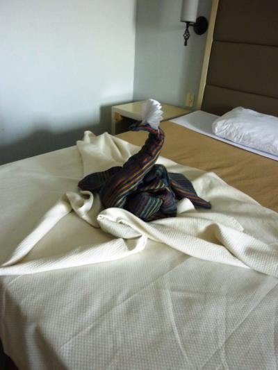 観光後夕方部屋に帰ったところ、なんとご覧のようなディスプレーがありました。翌日ツアーのメンバーに聞いたところ、他の部屋でも多目のチップ置いた所にもあったそうです。