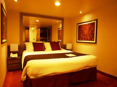 新造船で二年経過。大変綺麗で快適です。それに窓無しの内側船室ですが、予想より広く感じました。ベッドがツインになると余計広く使えます。- 旅行時期