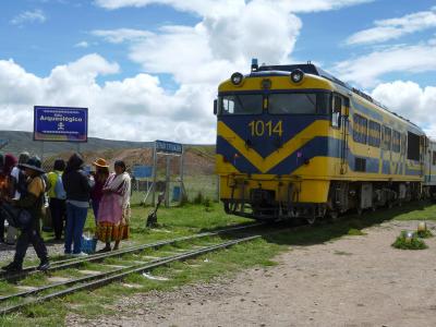 ティワナク遺跡見学中に週に一度の鉄道列車が到着しました。