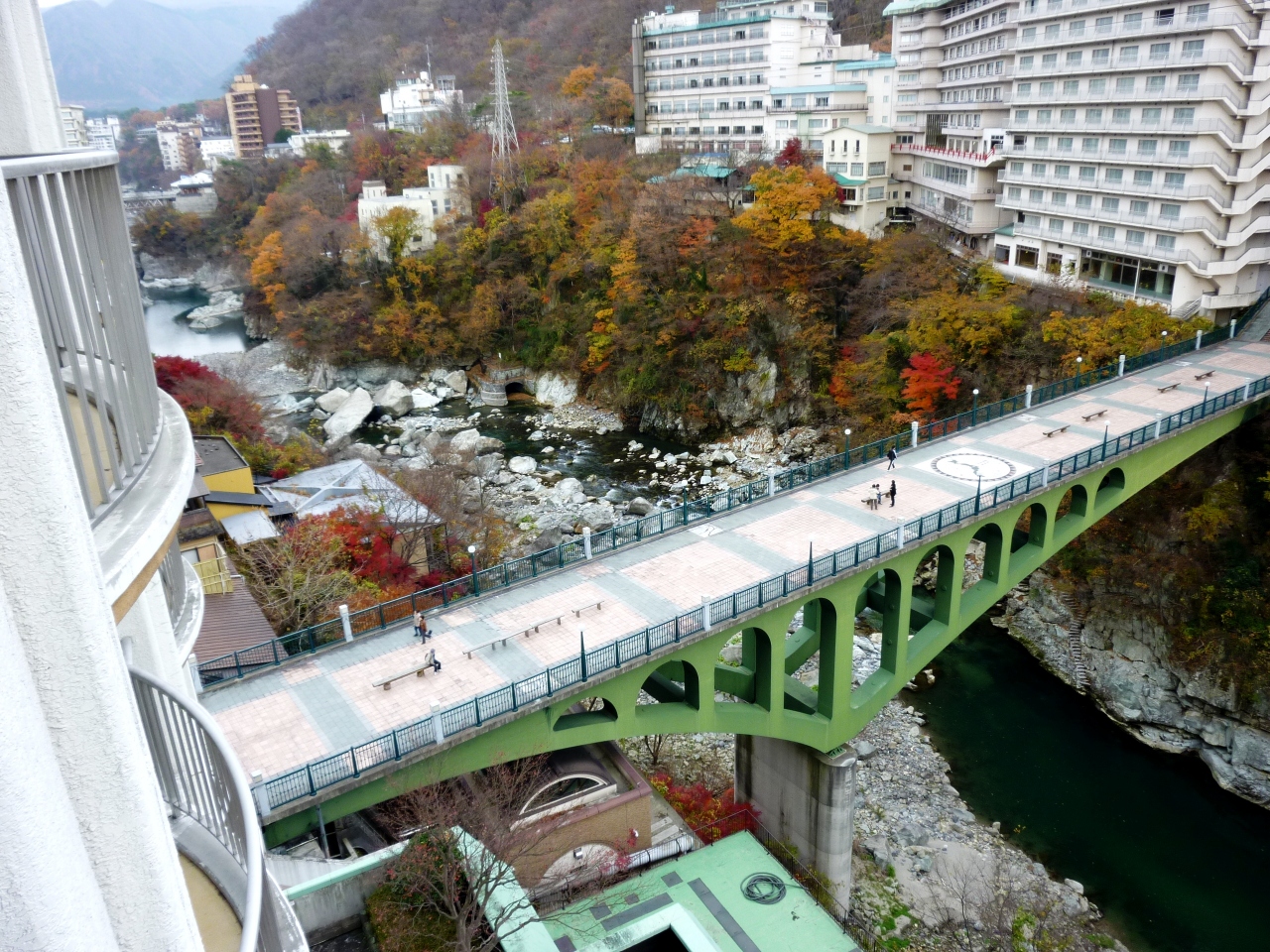 ふれあい橋のたもとにある鬼怒川観光ホテル宿泊時に、