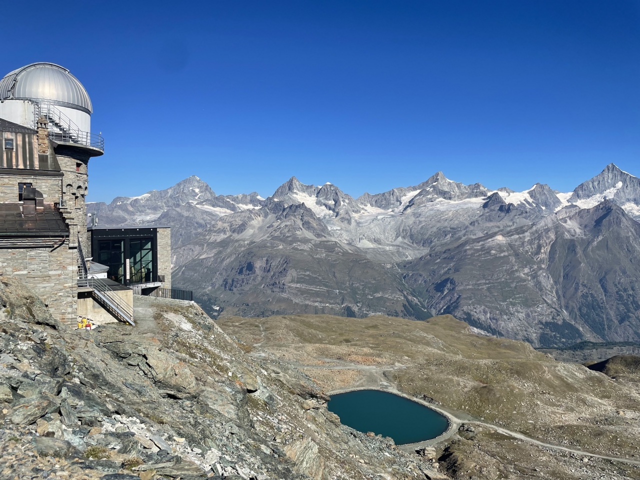 ゴルナーグラート駅から少し坂道を上がってくるだけで、絶景パノラマの展望台に来られます。