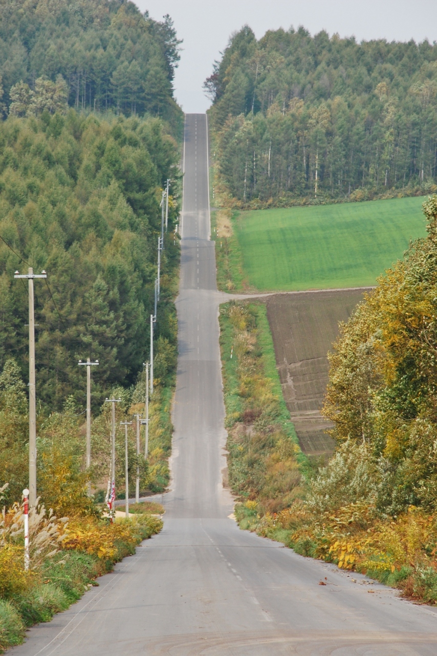 以前は知る人の少ないマイナーなスポットでしたが、地元の雑誌で紹介されたり、口コミで評判が広がるなどして訪れる人が増えているオススメスポットということで行って来ました!「ジェットコースターの道」と称されている、アップダウンの激しい道が名物です♪1番高いところから見渡すと、天気の良い日は 旭川・美瑛市街地の遠景、大雪山連峰などがキレイにのぞめるそうですが、この日はあいにくモヤがかかっていました。