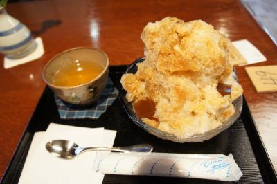 おはらい町でスイーツといえば、やはり「赤福」が超メジャーですが、あえてお隣の「五十鈴茶屋」へ... 実は、ここも赤福の経営なんですが、案外認知されていなくて、赤福が大行列なのに、ここはすいていて、中も席が選びたい放題でした!ここのオススメは、「黒みつ氷」=☆中に、黒みつ風味の葛寒天とわらび餅が入っています。