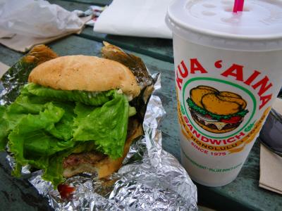 今では、日本でも食べられるクアアイナのハンバーガーですが、やはり本店で食べる味は格別です!ハレイワの町にぴったりのかわいいお店で、サーフボードなどが飾ってあり、店内の雰囲気もgood♪最近は、ツアーの行程にも組み込まれているようで、ツアーの方達と重なると少し待つことになります... テーブルが一杯の場合は、to goして、すぐ先にあるビーチで食べるのがお勧めです♪