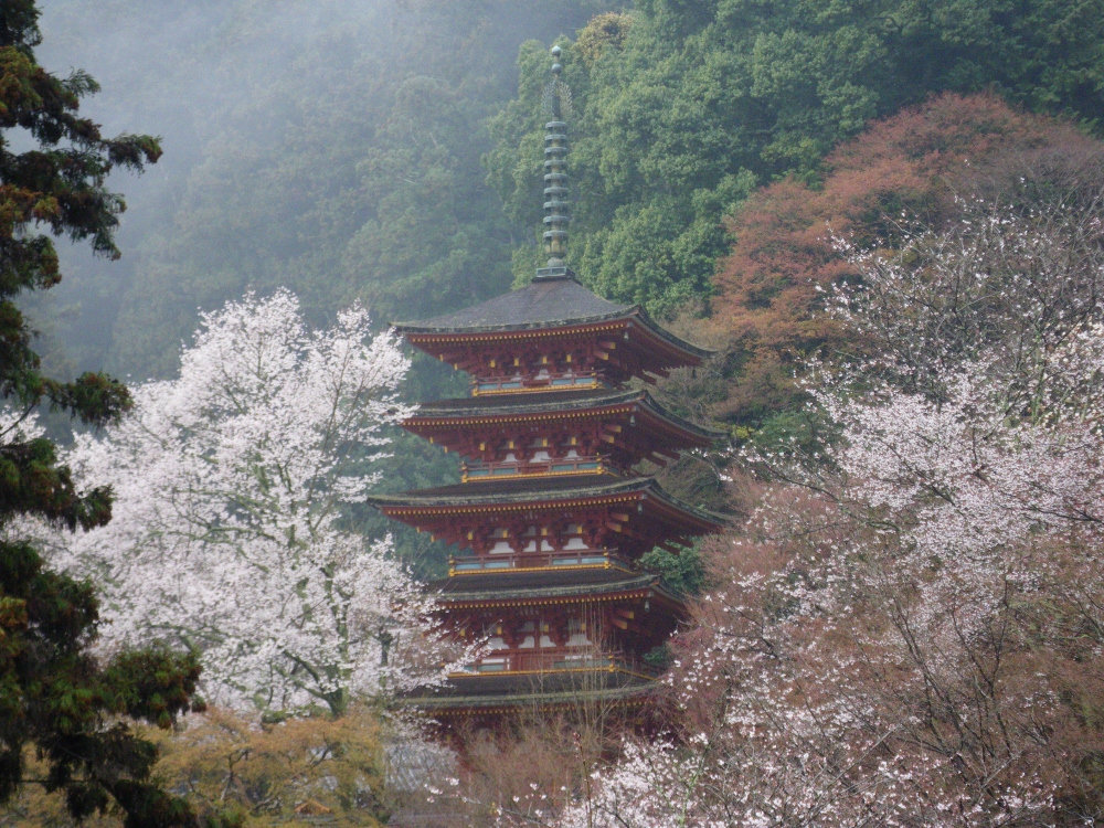 本堂に続く昇廊を延々と上るのは結構ハードなんですが、「昇廊を昇るのは、正に極楽浄土への道を昇るが如し...」、とアナウンスが流れていています♪ がんばって登った御本堂からみえる五重塔はそれは見事!桜の海の中に浮かんでいるみたいに見えます。花マニア&写真マニアの方達が多く訪れていましたが、境内には、ベンチや休憩所などが点在しているので、ゆっくり花々を観賞することができました。京都などと比べると圧倒的に人が少ないので、京都のぎゅうぎゅう花見に疲れた方にオススメのお寺です!