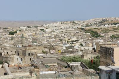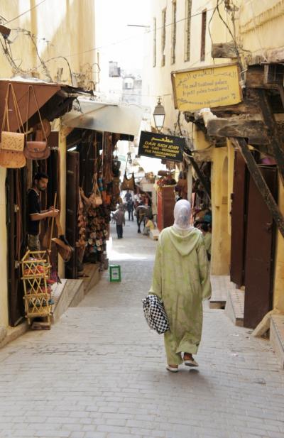 フェズのメディナ(旧市街)は、迷宮の街として有名です。メインストリートとよばれる道が2本あり、それを歩いている限り迷わない...と、書かれていたので、いざ歩き出してみましたが...お約束通りすっかり迷いました...(汗)東側のエリアの道はかなり複雑です!「メイン」と呼ばれていても、側道と道幅が変わらなかったり、側道の方が栄えているところもあるので、だんだん感覚がマヒしてきます!でも、迷いながらもフェズの日常が垣間見えたりするので、楽しい部分も...。神学校はとても細やかな細工のイスラム建築で見所大です!