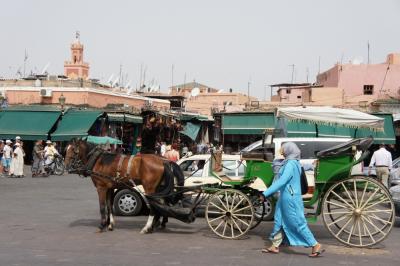 マラケシュのタクシーは、他の都市に比べ高いと感じました。また、リヤドなどでタクシーを呼んでもらうと、相場より2倍程高くなります。メーターはありますが、まず使ってくれないので、乗る前にホテルなどで相場を聞いておき、交渉をしてから乗る必要があります。交渉は面倒ですが、こちらが相場を知っていると相手がわかれば、あっさり相場で折り合いがつきます。フナ広場へは、午後になるとタクシーが入れなくなります。