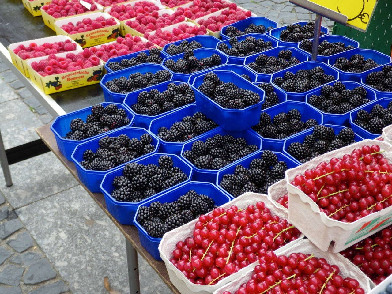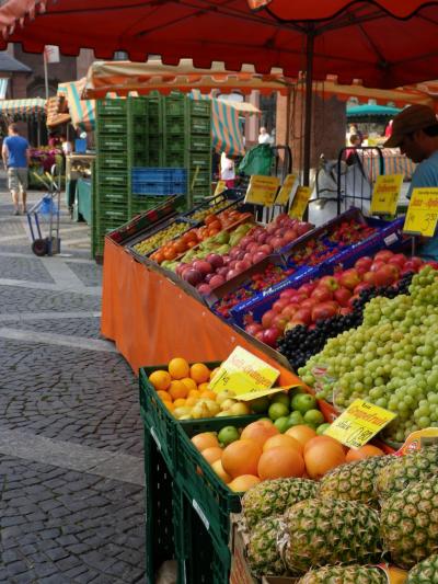 マルクト広場では、火・金・土の午前中に市がたちます!広い広場一帯にお店が開かれ、新鮮な野菜やフルーツ、花々、はちみつ、チーズなどが売られています。観光客向けの市ではないので、おみやげ物などはあまりありませんが、地元の方達はみなさんエコバッグ持参で楽しそうにお買い物をしています!移動カフェやホットドッグの店などもありますので、朝のお散歩がてらぜひ行ってみてください♪ 個人的には、ミュンヘンやフランクフルトの市より楽しいと感じました。