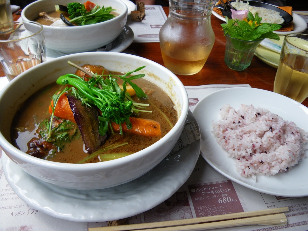 その名のとおり、由仁町の畑の真ん中にあるお店。畑でとれたお野菜をいっぱい使ったスープカリーが人気のお店です!カリーの辛さやごはんの種類(ガーリックライスや赤米のごはん、白ご飯)なども選べます。カリーは、どんぶり鉢のような大きなお皿で出てきますので、食べても食べても減りません...。だいこんやごぼう、しいたけ、水菜など、今までカリーとは無縁と思っていた野菜もカリーの具材に使われていて、目からウロコでした♪1階ではおいしいスィーツやコンフィチュールなども売られています♪
