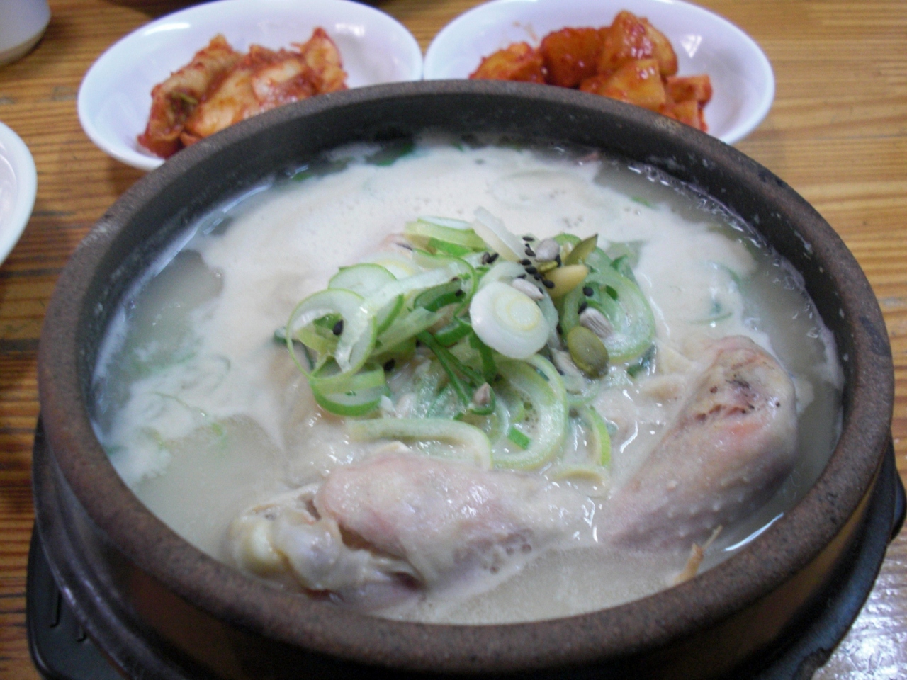 お店は、韓国の伝統的家屋「韓屋」で、おいしいサムゲタンを求め、地元の方&観光客がいつも行列をつくっています...。部屋はいくつか分かれていて、中にはオンドルの部屋も...。日本人とわかると、まとめて日本人ゾーンに入れられるみたいです。調理場でぐつぐつ煮ている様子も見ることができます。味はかなり薄いので、お好みで置いてあるお塩やキムチを入れていただきます。寒い冬には、体があたたまり最適なお料理でした!