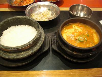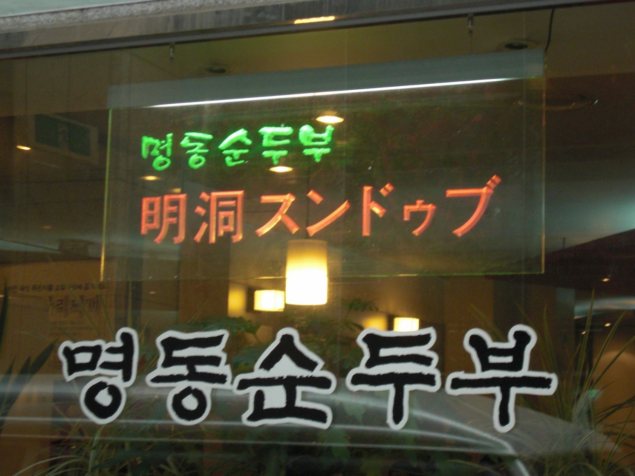 場所は、明洞でかなりわかりやすい場所にあります!店内はファミレスちっくで、一瞬はずしたかな?とも思いましたが、お味は良かったです!主人はシーフード、私はポークのスンドゥブを頼みましたが、2人で8百円位でした...。ナムルもキムチもごはんも食べられて、1人4百円とは、なかなかコスパの高いお店です♪ お代わり自由とはいえ、あまりにも頻繁にお代わりを要求する日本人がいて、お店中が引いていました...。