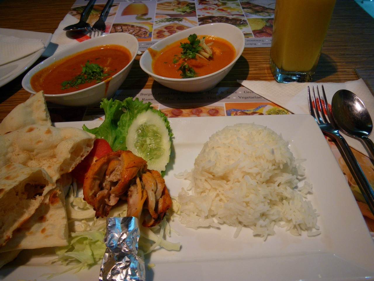 MBKには、昔ながらのフードコートとおしゃれな「5th アヴェニュー」というフードコートの2つがあります!旅も終盤、そろそろタイフードにも飽きてきたので、「5th アヴェニュー」の方へ行ってみました。こちらのフードコートはかなりインターナショナルで、インド料理や日本料理、韓国料理、中華料理などの定番の他に、ギリシャ料理などもありました...。逆に、タイフードはあまり充実していなかったので、タイ料理を求める方にはオススメできません...。だんなさまはギリシャ料理、私はインド料理...とタイとは全く関係のないメニューを選択しましたが、結構美味しかったです♪ ただし、お値段は、青山のランチ価格位したので、ちょっとランチには不向きかも...