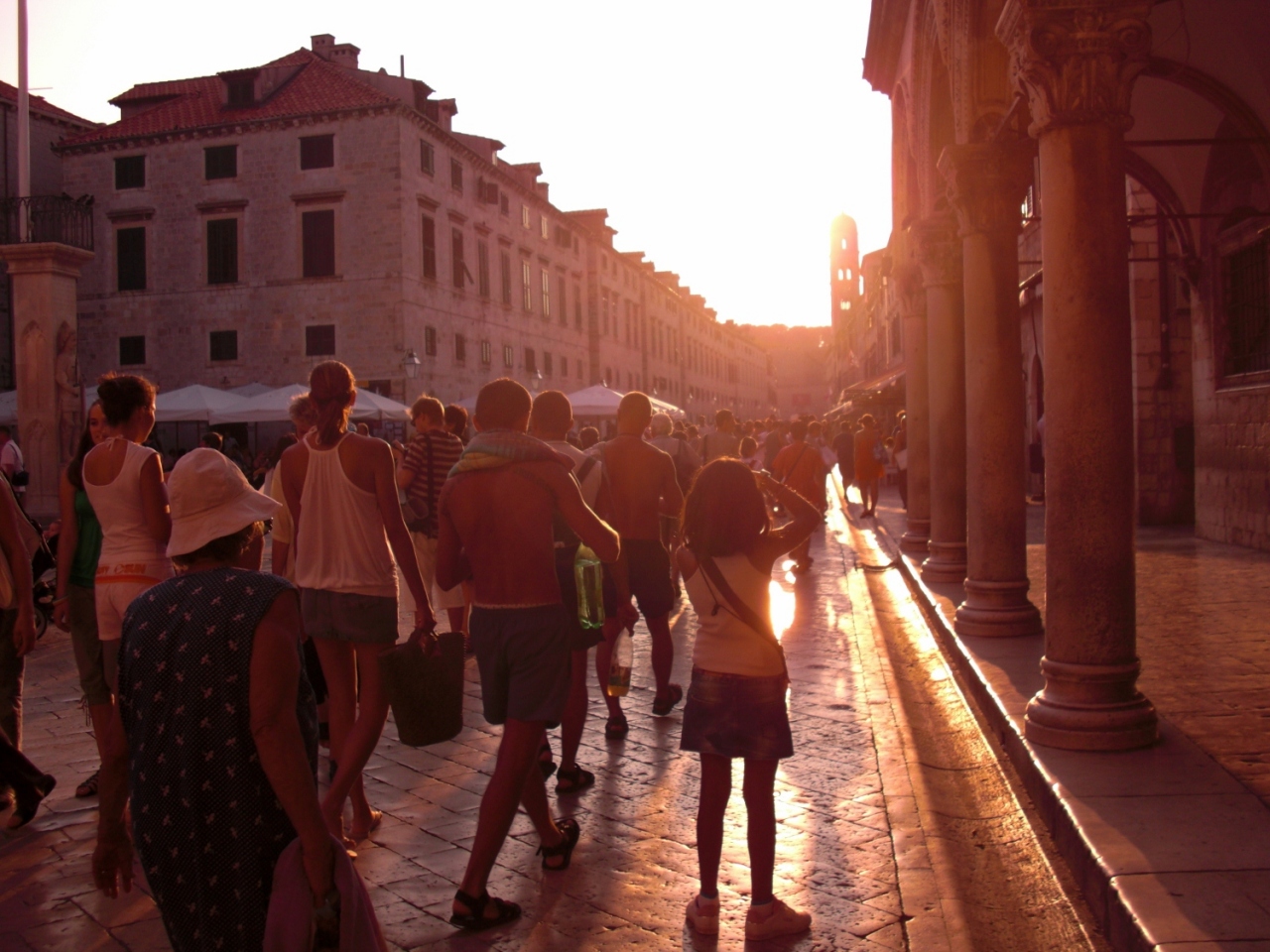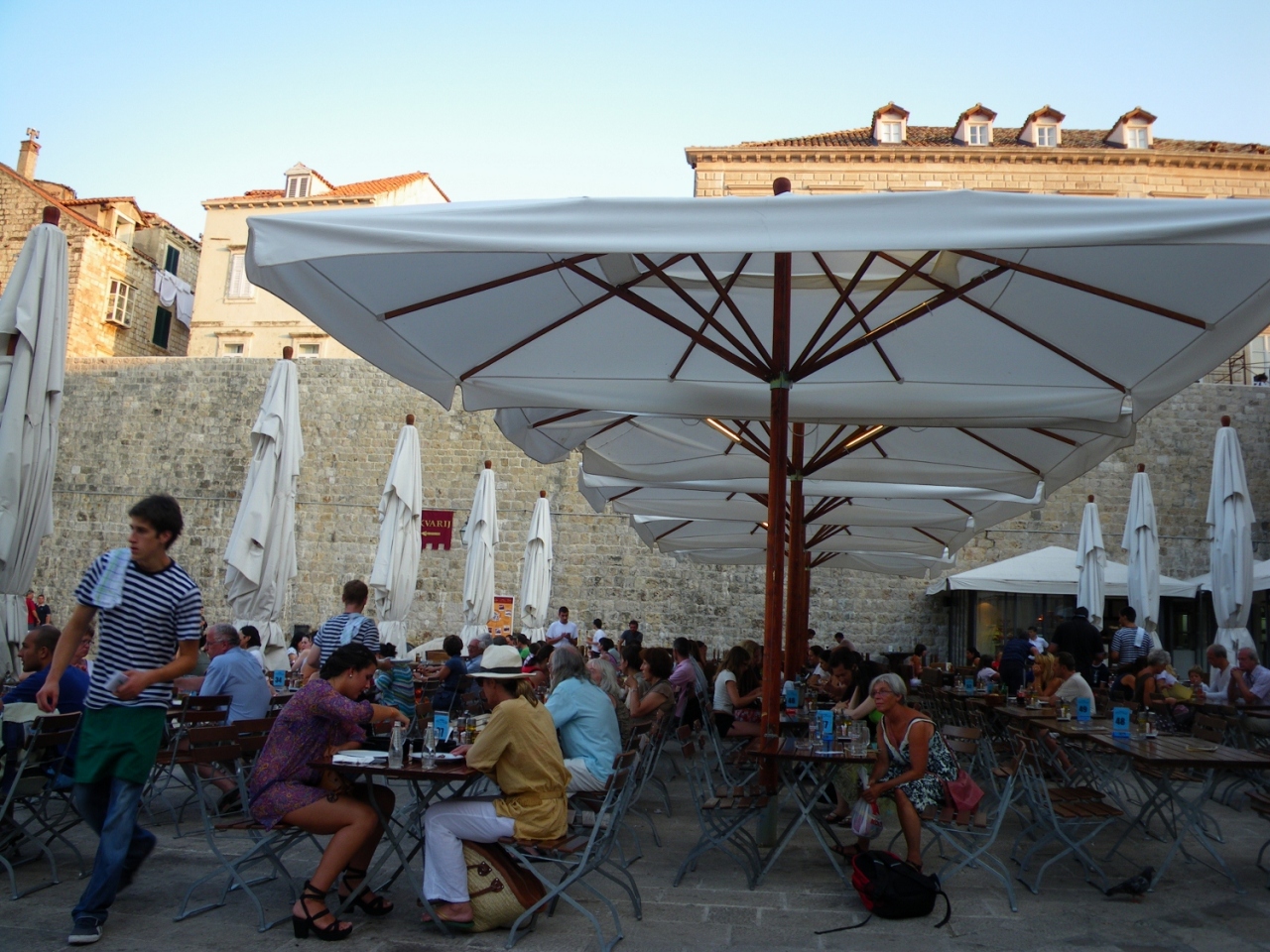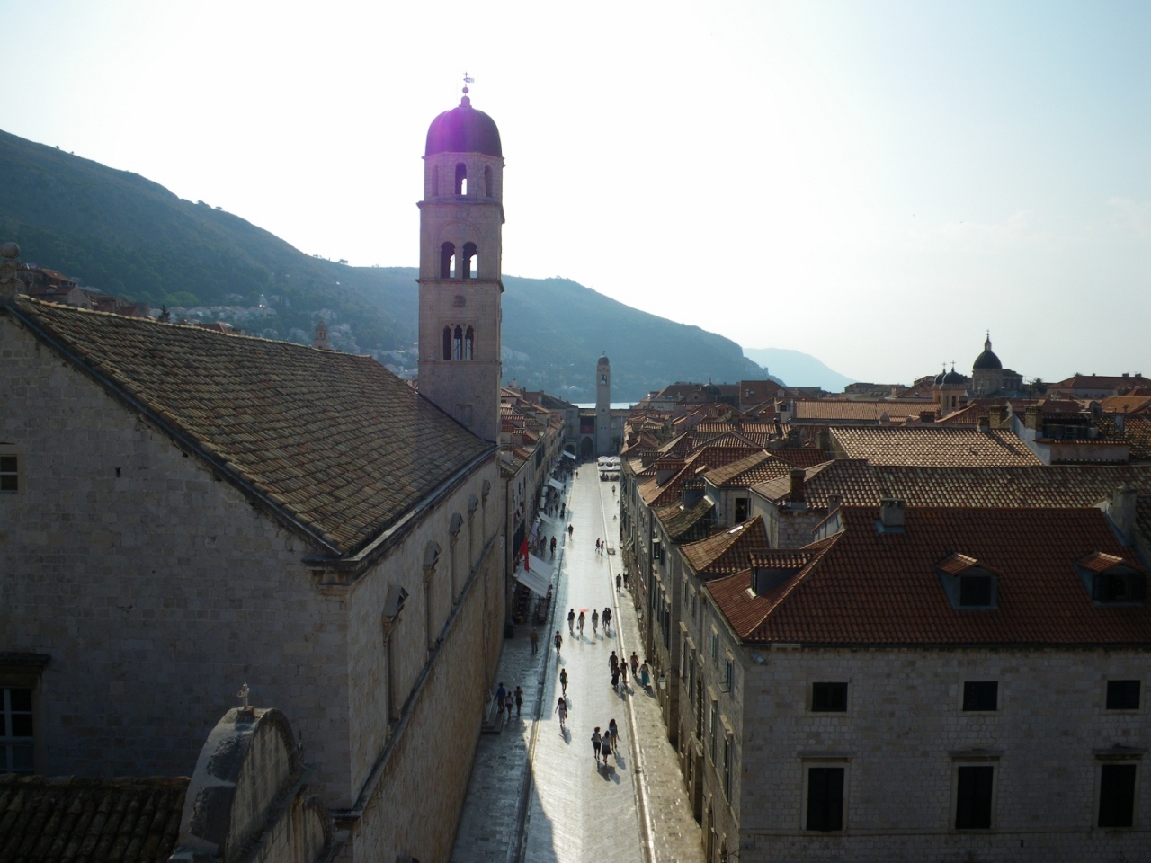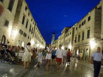 朝から晩まで人の流れの絶えない旧市街のメインストリートです!旧市街の中は、フラットな場所は案外少なく、メインストリートであるプラツァ通りと1本南のodpuca通りだけがフラットで、それ以外は南北それぞれ階段状に街が構成されています。そういう地理的な条件もあり、やはり多くの人が集まるのはこの通りになります。カフェやレストラン、おみやげ物屋さんなどがぎっしり並んでいて、じっくり見て歩くと時間を忘れてしまいます...。ものすごい数の観光客が利用する通りですが、深夜に毎夜清掃が行われているようで、朝になると通りはぴかぴかに蘇っています!