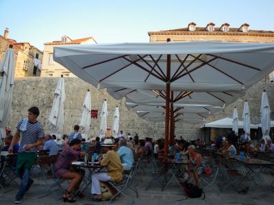 ドブロブニクの観光といえば、やはり城壁の上から見るドブロブニクの町並み&美しいアドリア海です!真夏の観光はかなり混みますので、城壁の観光は、朝1がやはりオススメ☆ 朝8時からのオープンに行くと、まだ観光客の数も少ないので、写真もゆっくりアングルを定め撮影することができました。城壁を歩いていると、頻繁に入場券のチェックが行われますので、入場券はなくさないように...。また、城壁ウォークは反時計周りに進むのがルールです♪また城壁の上は太陽を遮るものがほとんどなく、照り返しでかなり暑くなるので帽子と水は必携です!モチロン、途中カフェはありますが、かなりぼったくりプライスです。