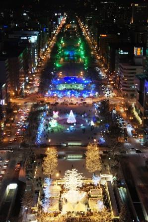 毎年テレビでは目にしていましたが、今回、初めて札幌の「ホワイトイルミネーション」を見に行きました!今回は、大通公園会場しか行きませんでしたが、何箇所かで催されています。メインの大通公園は敷地が広いだけに、趣向を凝らしたイルミネーションの数々を楽しむことができました!真っ白な雪の上にイルミネーションの光がきらめいて、それはキレイでした!観光客の数も多く、きれいなイルミネーションの前では、記念撮影の列ができているところも!今回特に印象的だったのは、丹頂鶴と飛び立つ海原の様子をブルーのLEDで表現していたイルミネーション! 雪の白さとブルーのLEDの光が幻想的で秀逸でした...。かなり冷え込む夜でしたが、いろいろ屋台なども出ているので暖をとりながらじっくり楽しむことができました。真っ暗になってからよりも、夕刻から夜に向かう時間帯の方が写真はきれいに撮ることができるのでお勧めです。