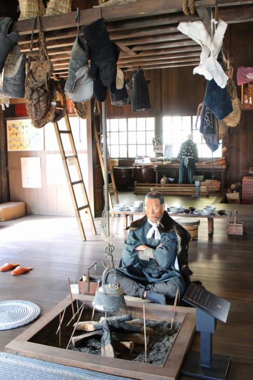 『鰊御殿 とまり』の見学に行って来ました。「鰊御殿」とは、第二次世界大戦前に、北海道の日本海側に建てられた、網元の居宅兼漁業施設(番屋)の俗称だそうです。土間を挟んで、右側が家族の居住スペースになっていて、畳のお部屋が続いています。土間の左側が、漁夫たちの生活ゾーン!こちらは、板の間。寒い冬は、板の間だと辛かったでしょうね。雰囲気抜群のおやじさんが囲炉裏端に座っています。その他、繁栄した頃の鰊御殿はいろいろ凝りに凝っていて、入館料300円の割には、結構見応えのある施設でした。
