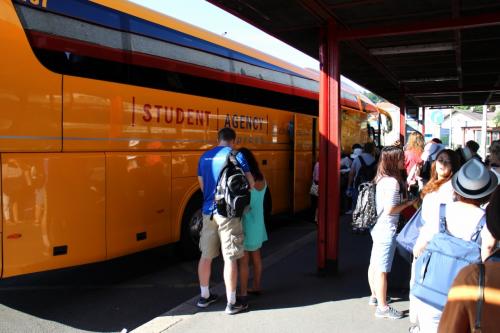 ナ・クニーゼツィーバスターミナルから『スチューデント・エージェンシーバス』に乗り、チェスキー・クロムノフへショートトリップをして来ました。全ての座席にはモニターがついていて、映画も見れます。意外と座り心地が良く、3時間の乗車時間でも、お尻がイタクなることはありませんでした。ホットドリンクの無料サービスもあり、トイレもあり...とっても快適な車内でした。人気のある路線ですので、前もってnetでチケットを購入するのがお勧め!購入の際、座席指定もできるので便利です!