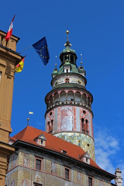 町のどこから見ても、カラフルなお城の塔が目に入ります。元々ゴシック様式で建てられたものの、1580~90年に、現在のルネッサンス様式に改修されたのだとか...。フランスやドイツ、イギリスなどのお城をいろいろ見て来ましたが、こんなにカラフルな塔は初めて!カラフルで可愛らしく、絵本の中に出てきそうな塔です。