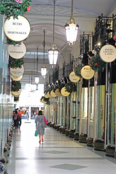 ピカデリーストリート沿いにある「ピカデリーアーケード」に行って来ました。ペパーミントグリーンと白を基調にしたアーケードはとても可愛らしく、歩いているだけで気分がうきうきしてきます。高級なワイシャツを売る店舗が多く、ブリティシュテイストいっぱいで、おしゃれなデザインばかりでした。
