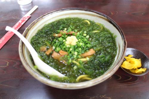 ランチに「のりば食堂」へ行きました。外観も中もかなりいい味を醸し出しています。私達が行ったときは、お客さんはうちな~(地元の方)オンリーでした。ウコンを練りこんだ特製麺は、黄味がかった太麺。あっさりお出汁と、すりおろし生姜がアクセントになり、とても優しいお味です。アーサーそばは、たっぷりのアーサー(海藻)が入っていて、食感も、香りも最高でした!