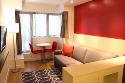 スタジオタイプのお部屋で、広さは25平方メートル程。この広さは、パリの中級クラスでは広い方だと思います。ソファーベッドなので、ベッドを引き出し使います。病院のベッドみたいで不安でしたが、マットの固さも問題なく、爆睡でした。キッチンも付いていて、冷蔵庫は小さいながらも冷凍庫もあり、バターを凍らせて持って帰るのに便利でした。エールフランスバスのバス停から3~4分の場所にあり、非常に便利です。