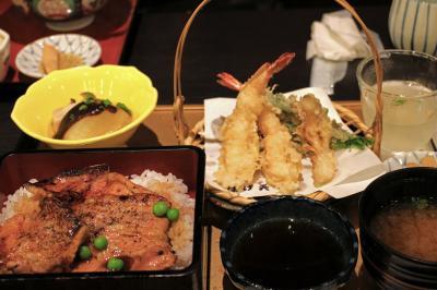 豚丼やぶた天丼が高評価のお店なんですが、どうしてもえび天が食べたくって、「えび天丼」をいただきました。さくさくの天ぷらも、ごはんの炊き方も、小鉢も、ぜ~んぶ美味しい。こんなお店がご近所にあったら...と思えるお店です。主人は、夜のランチメニューをオーダー。豚丼と天ぷら、小鉢、お味噌汁、デザートのセット。豚丼の豚さんは、厚切りなのに柔らかくて、香ばしい。落ち着いた雰囲気のお店で、接客もgood。リピ決定のお店です。