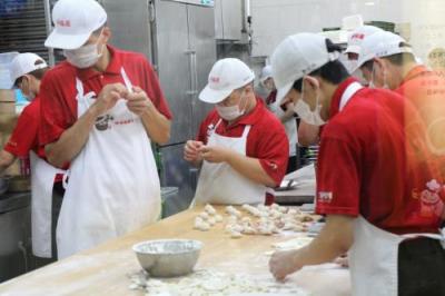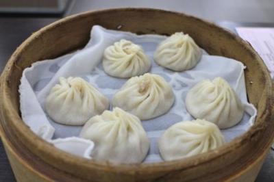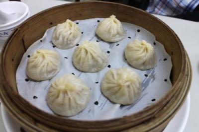 「上海華都小吃點心城」に行って来ました!お店の軒先では、店主らしきおじちゃんがせっせと小龍包を包んだり、蒸したりしています。お店自慢の一品『松針小籠包』を頂いてみました!なぜ、「松針小籠包」かというと、ぴらっとめくるとすぐ分かります!セイロの下には、普通は蓮の葉を敷くんだそうですが、ここでは松の葉を敷いて蒸しています。松の香りがほんのりと小籠包に移るんだとか...。実は、私たちには「松の香り」については、あまりわかりませんでしたが、とっても美味しくって、かつ、台北で食べるよりずっとお安い!というコトはきっちり理解できました。