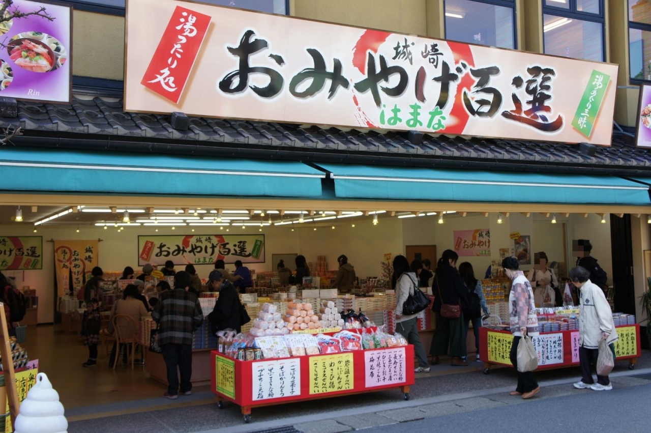 城崎温泉のお土産物を探しに、このお店へ入りました!「おみやげ100選」と名うつだけあって、品揃えは温泉街1!たくさんの商品がずら~っと並んでいます。並びすぎていて、どれを選んで良いのかとまどう程でした。城崎名物ではありませんが、丹波の黒豆を使ったクッキーを買ったところ、本当においしかったです!