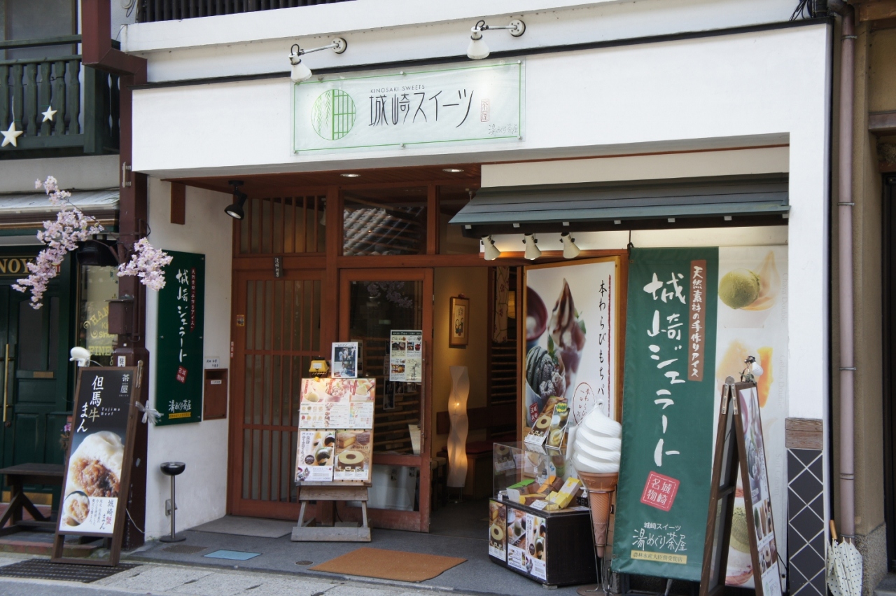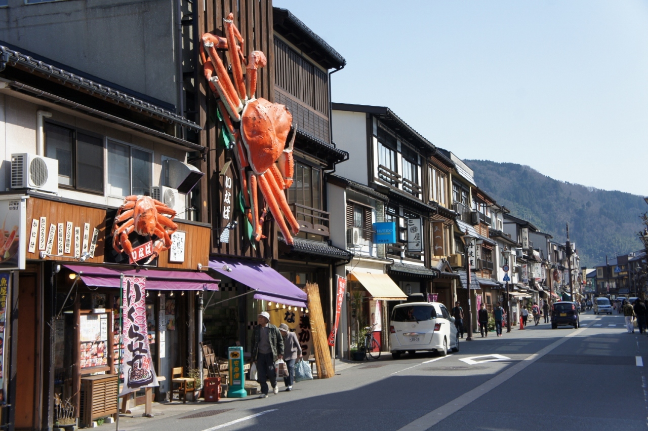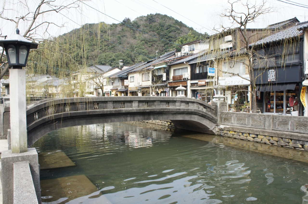 城崎温泉といえば、7つの「外湯めぐり」が有名ですが、温泉街自体に趣があって良いところです。川沿いには柳の木々が植えられ、ちょっとレトロな建物が並ぶ中、お風呂上りにぶらぶらと散策するのは最高です。こじんまりした温泉街ながら、平日にもかかわらず多くの観光客で賑わい、活気のある温泉街といった感じでした。