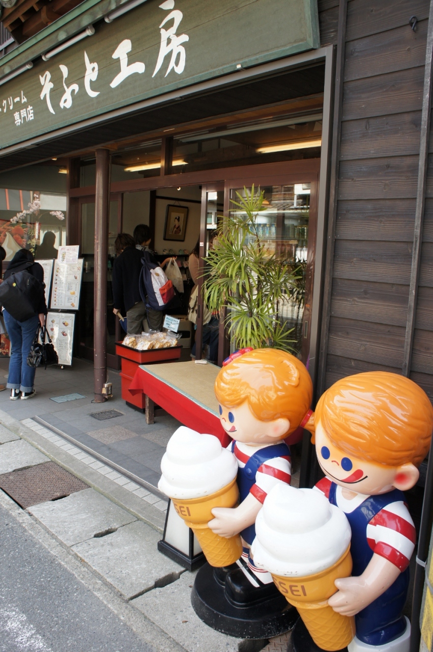 ガイドブックにも載っているお店で、長い行列もできていたので入ってみることに...。お店の中は「和」を上手くアレンジしたインテリアで良い雰囲気。奥の畳の小上がりにはこたつ席も...。ただ、店員さんが1人しかいない割には、お客さんが溢れすぎて、さばくのに精一杯で、サービスなんて後回し。カウンターの上には食べた食器が山積み。ウリにしているソフトクリームは、小さい盛りの割には結構なお値段...う~ん、ここは間違いなくリピなし。