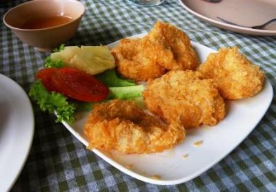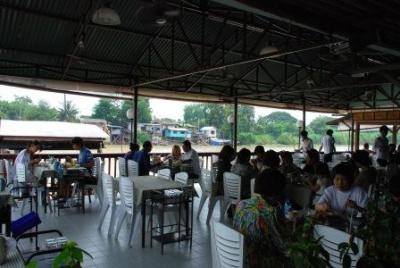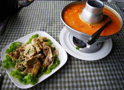 アユタヤ1日観光の際、タイ在住の日本人の方のブログで紹介されていたこのお店へ行ってみました。川を臨みながら食事ができるロケーションは最高ですが、かなりディープです。オーダーもタイ語オンリーですが、写真付きメニューがあるので、指差しオーダーOKです。ただし、指差しをした場所が悪かったのか、本当は、チキンの炒めものをオーダーしたのですが、レモングラス蒸しに、炒飯が白飯に変わっちゃいました。ここのトムヤムクンは、えびがごろごろ入っていて、美味しかったです。